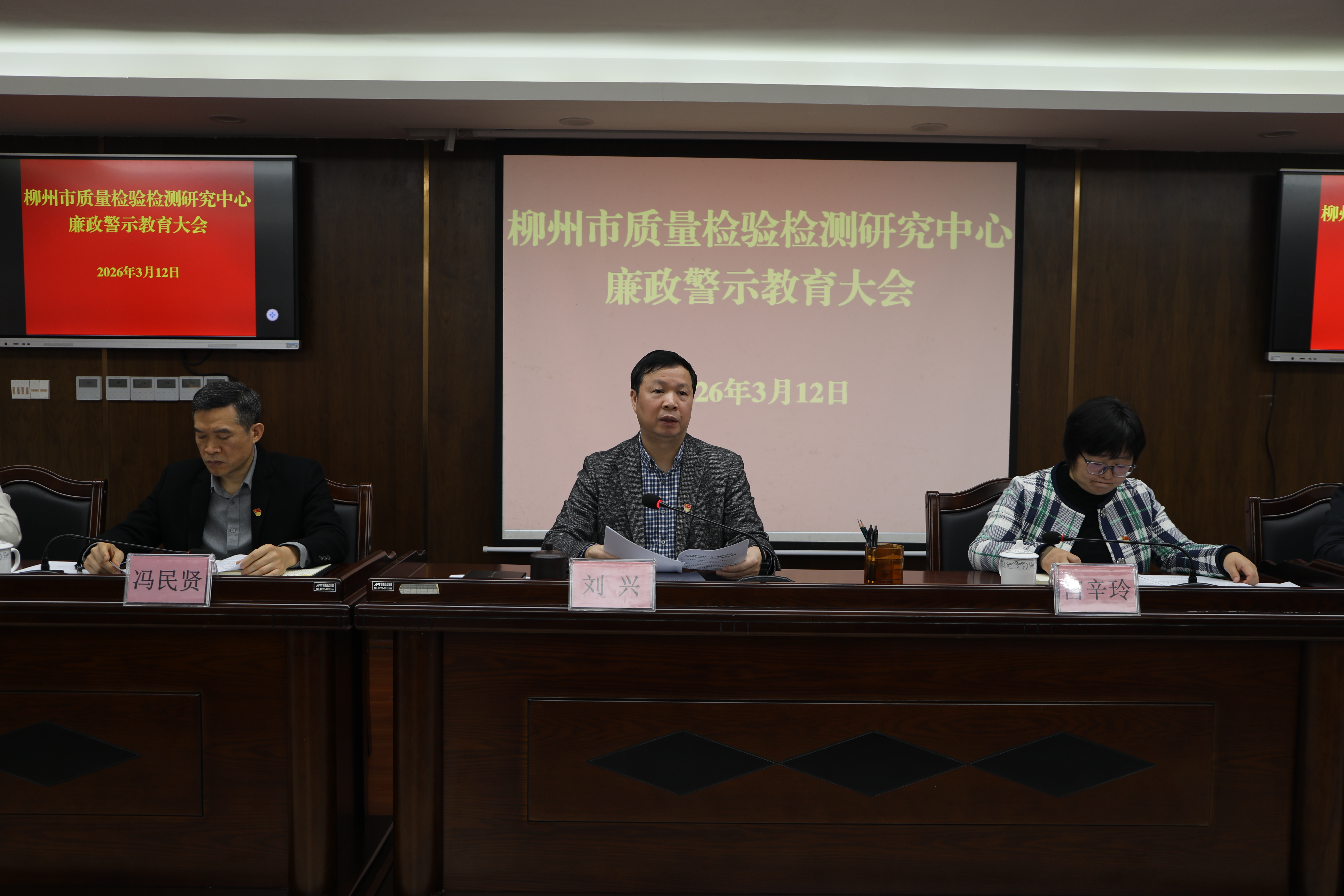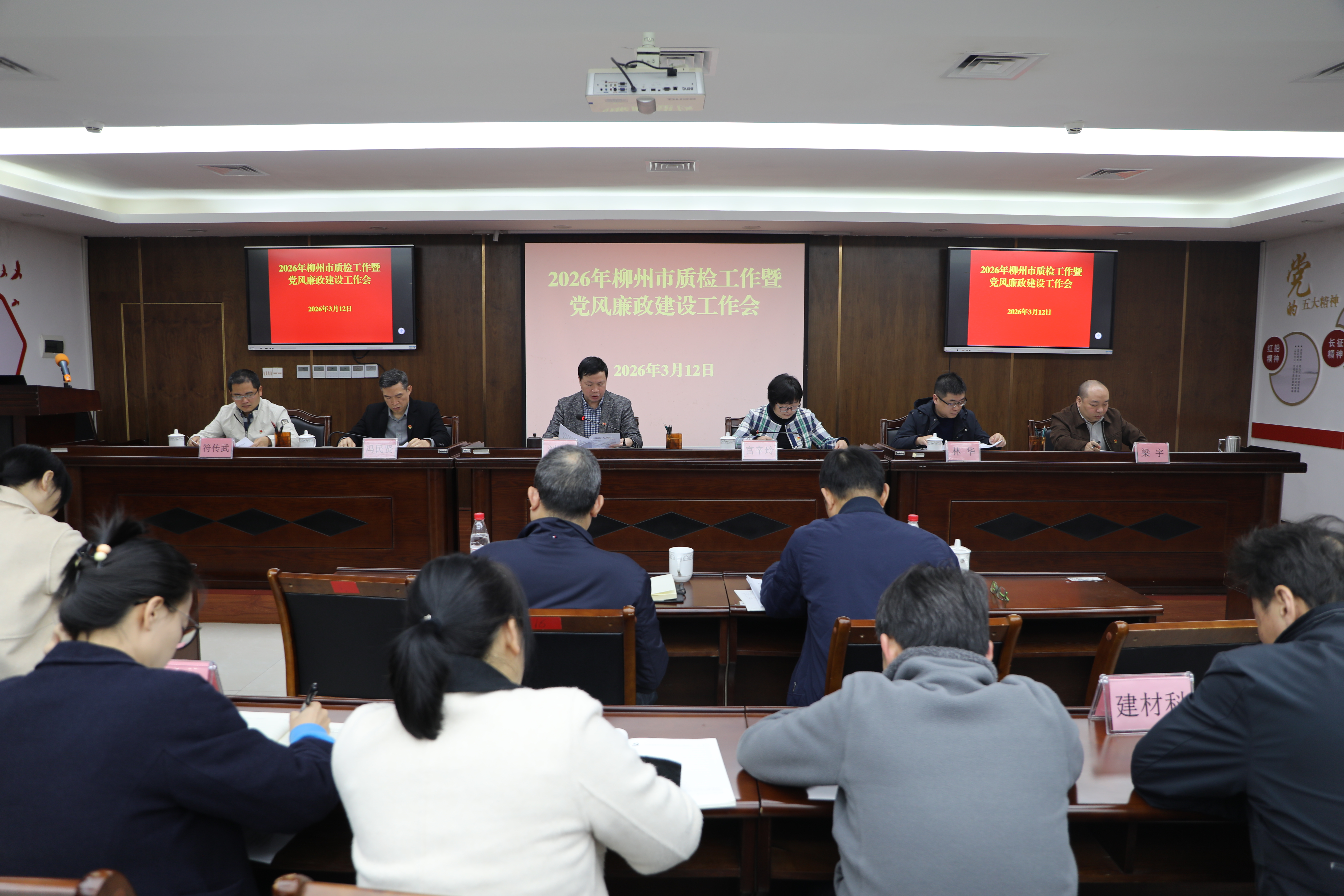 3月12日,2026年柳州市质检工作暨党风廉政建设工作会议召开。会议以习近平新时代中国特色社会主义思想为指导,全面贯彻党的二十大和二十届历次全会精神,认真落实市委、市政府以及市市场监管局工作部署,总结2025年工作,回顾了“十四五”期间我中心发展成效,分析当前形势,部署2026年重点任务。柳州市质检中心党总支书记、主任刘兴作工作报告。